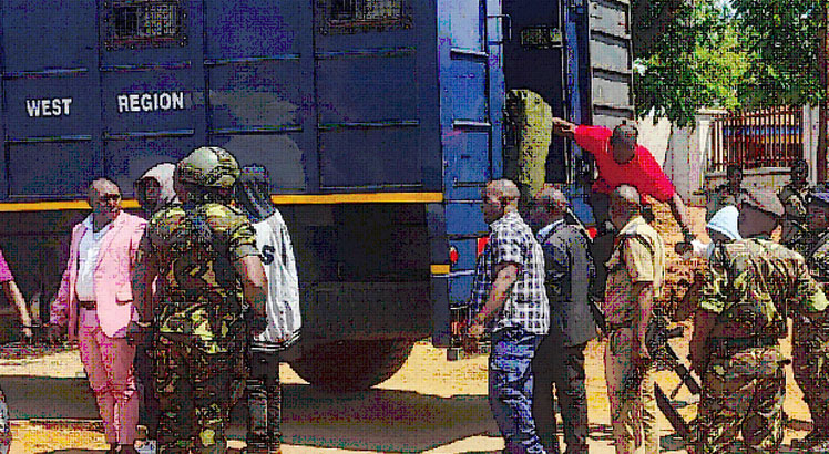 They are accused of assaulting human rights activist Sylvester Namiwa, burning two vehicles and robbing people of property.